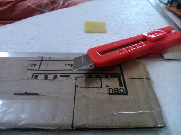 Tomé un cartón grueso y caliente lo pegado a la espuma
