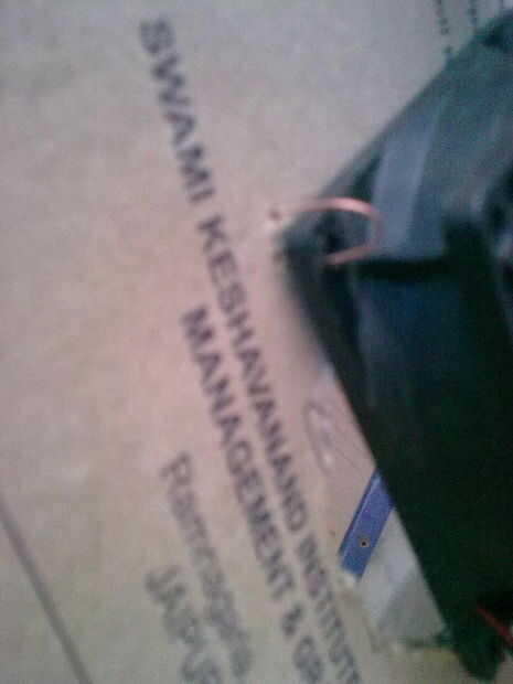 he utilizado un hilo de cobre para unir el motor a cartón. Motor tiene pequeños agujeros en la esquina así que utilicé para atar haciendo mismos agujeros en el cartón.