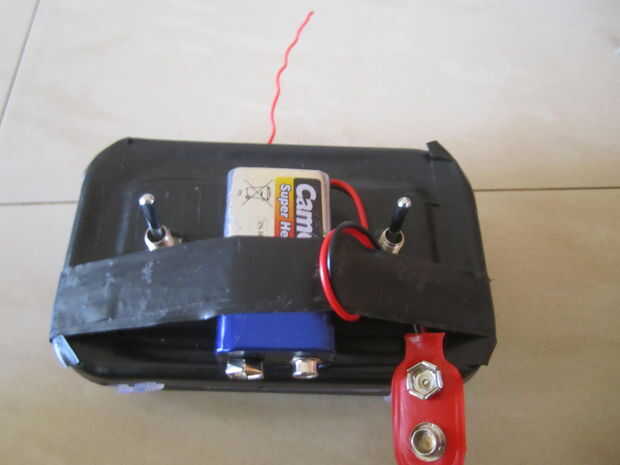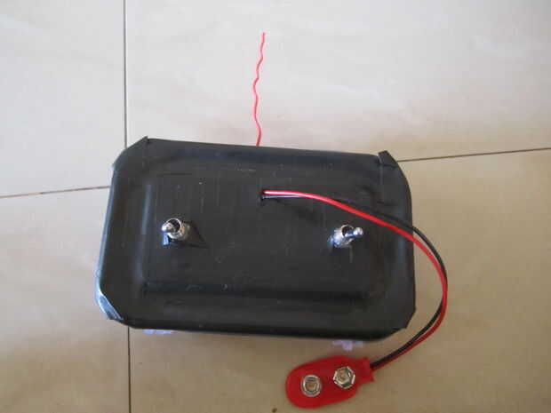 Finalmente Coloque la batería de 9v en el centro con cinta.