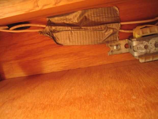 Ahora que todas las piezas se atornillan donde pertenecen, pase el cable por el agujero original y alinee los hilos donde no interfieren. En lugares donde los cables pueden colgar demasiado bajo, utilice la cinta de conducto para mantenerlos donde quiere.