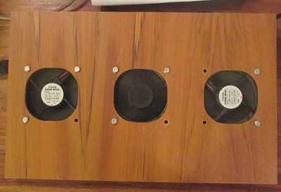 Lo que surgió como se puede ver es dos pedazos de tiempo reciclado que tenía por ahí, corté 3 bolsillos para los fans que encajan, con agujeros que son del mismo tamaño que las aspas del ventilador, ambas piezas de madera se reflejan así los ventiladores tienen un ajuste apretado y esto hace que la pinza madera juntos muy bien.