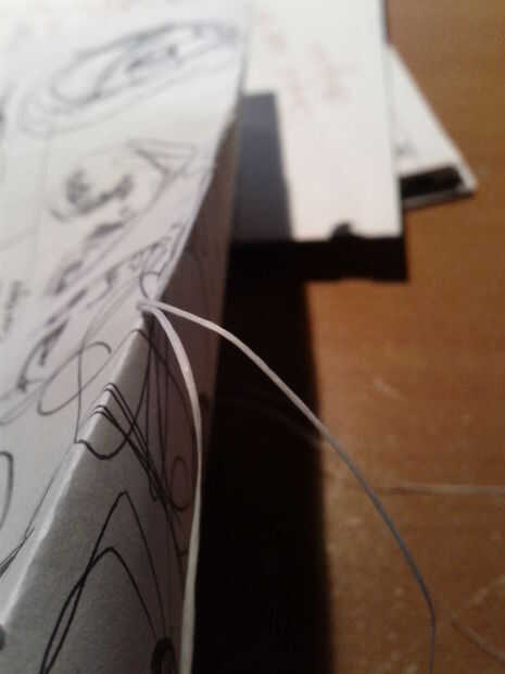 • Tejido a que a partir, asegurándose de que el frente y la parte posterior de la espina dorsal se forra con hilo.