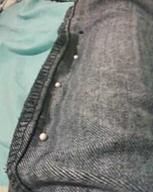 Prender los jeans a lo largo de la costura anterior. La costura que es generalmente en el exterior de la pierna es el que desea fijar.