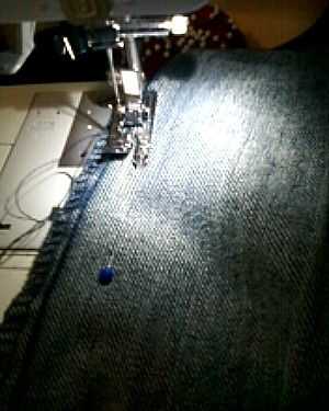 Generalmente Hilvanar primero entonces Pruébate los jeans y hacer los ajustes y comience a coser en una longitud de puntada normal.