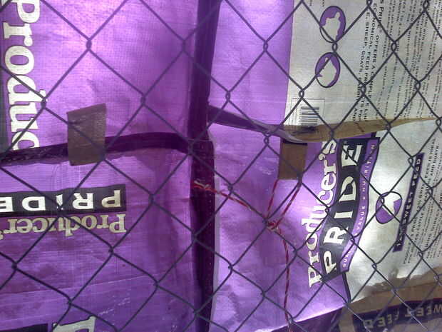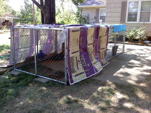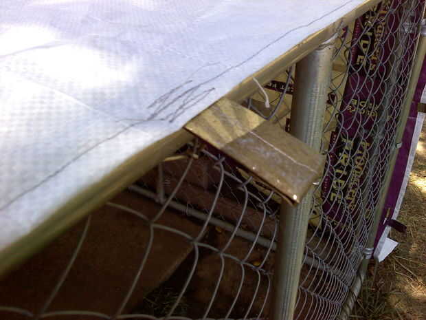 Cuando dobladillo se realiza en ambas secciones Coloque en la perrera mal hacia fuera. Utilice el marcador para marcar donde usted quiere atar las correas de para ser. Usted no sólo pondrá las correas de lazo en los bordes pero el interior, así, estos le permitirá tensar la lona atando a la cerca del acoplamiento de cadena. Coser las correas de lazo interior donde está la costura doble.