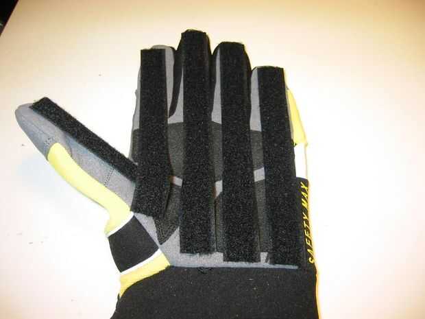 Bastante fácil paso, sólo saber cómo desea fijar la cinta de Velcro a su guante. Decidí que para simplicidad corta el Velcro en 5 pedazos, uno para cada dedo y luego coserlos. Puede utilizar cualquier estilo que luce fresco para usted.