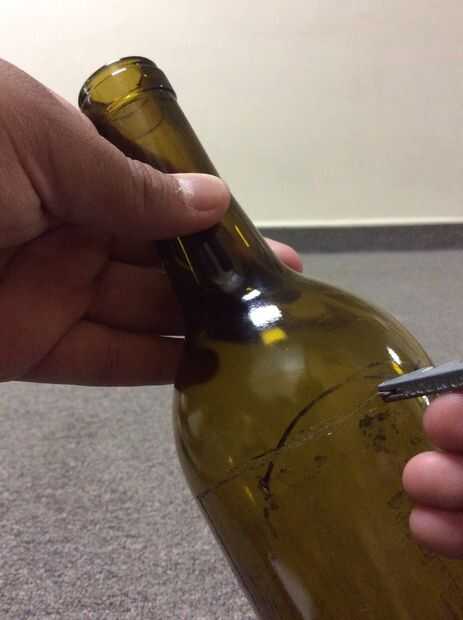 Tener en cuenta que el cuerpo del cristal sí mismo. Este proyecto será difícil o fácil dependiendo de los tipos de botellas de vidrio que se utilizan. Los tipos más fácil de vidrios a utilizar son botellas de cerveza vacías. Si desea hacer una taza, debe usar una botella de cerveza. En nuestro ejemplo hemos hecho un jarrón de una botella de vodka. Para las botellas de vidrio, que sólo desea agregar suficiente presión como para rayar la superficie del vidrio. Si se agrega demasiada presión, probablemente se quebrará el cristal.