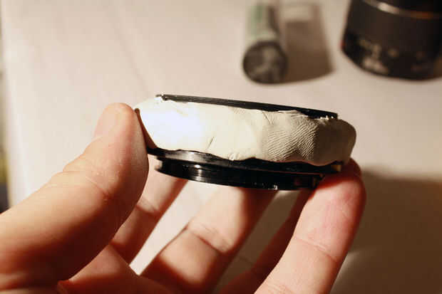 Asegúrese de que no hay en la parte inferior que se conecta a la cámara, ya que debe estar a nivel en el Monte. También necesita dejar un pequeño espacio para su lente a rosca en. Si la lente está rota como la mía que acaba de poner la lente en y fijarla permanentemente.