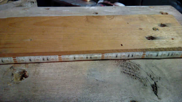 Cortar la tira llevada de la longitud de la madera y péguelo alrededor como la foto