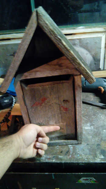 Ahora tenemos el buzón en el Banco, medir el buzón de arriba hacia abajo y cortar un trozo de madera sobre la medida