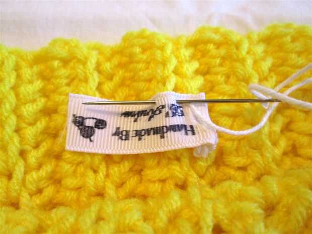 Coser la etiqueta en su trabajo.