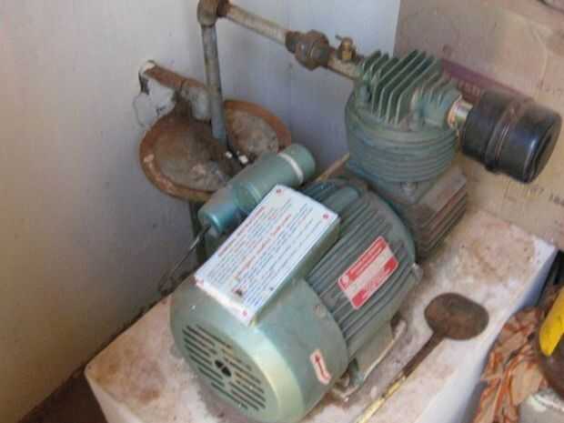 Un compresor de 1.5 HP bomba se instala en el agujero en nuestro jardín. Un pequeño tanque de agua de 500 litros se utiliza para almacenar el agua para fines de riego.