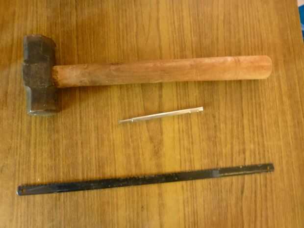 Las herramientas utilizadas son un martillo, un hack hoja de sierra y un golpe de un conjunto de tornillo.