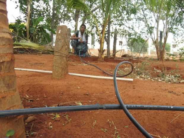 Por goteo sistema de riego que cuesta sólo cinco centavos y el tiempo.
