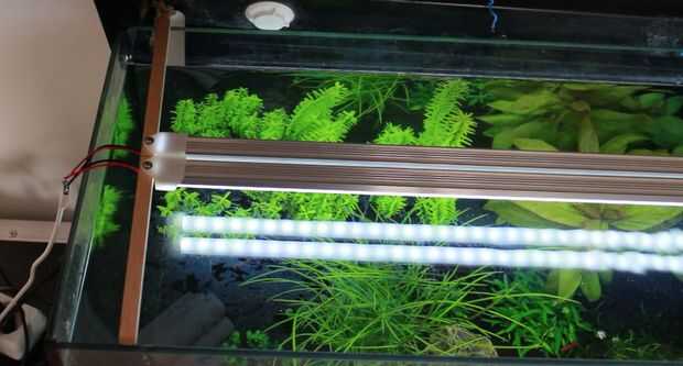 Necesitaba una luz en mi acuario pero no podía ser una norma fluorescente o LED lámpara porque no hay ninguna tapa en mi tanque a apoyarla y el agua gotea hacia abajo desde arriba (por lo que la luz debe ser resistente al agua).Mi pecera tiene planta