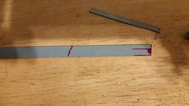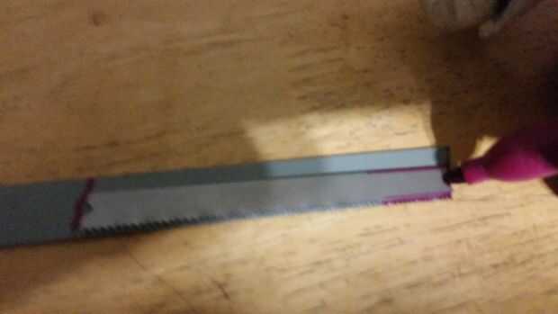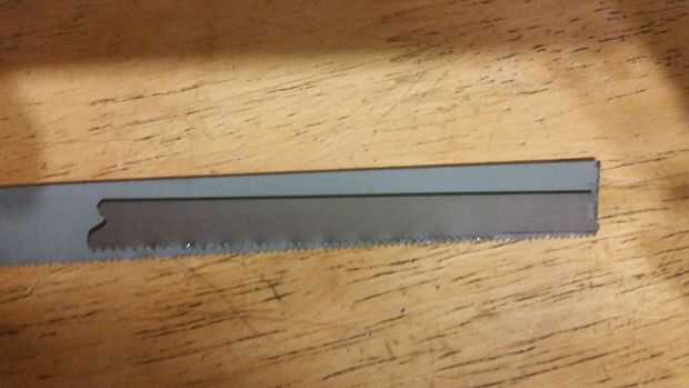 Use una lijadora de banda o un archivo para quitar los dientes donde la hoja se pasa a la Sierra de vaivén.