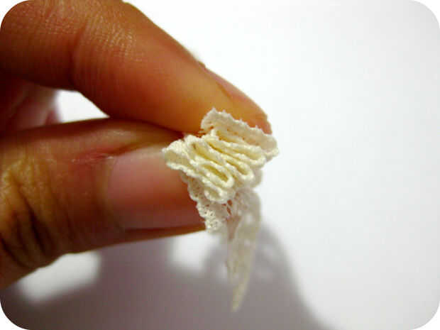 Doble el borde recto de la encaje izquierda y derecha como un acordeón. Cosa en su lugar.
