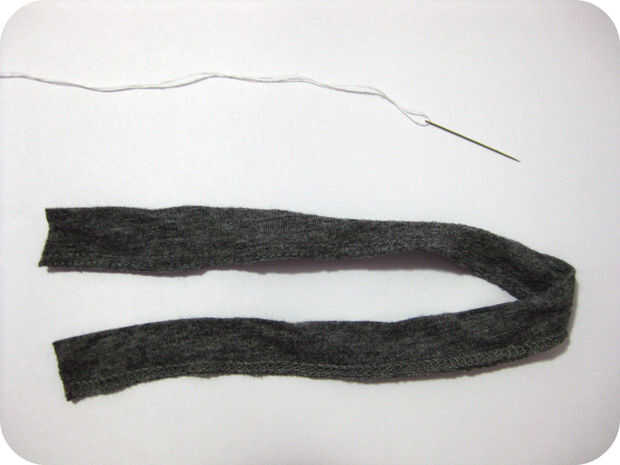 Cortar la parte inferior de tu camiseta (hem) para producir una tira de 36cm. Puede utilizar una tira más larga para hacer una flor más grande o uno más corto para hacer una flor más pequeña.