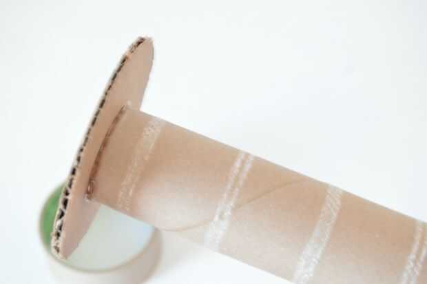 Ahora corte un trozo de cartón que es más grande que el rodillo de la cinta del pintor vacío. Utilice E6000 y pegar un extremo del rollo a la pieza de cartón.