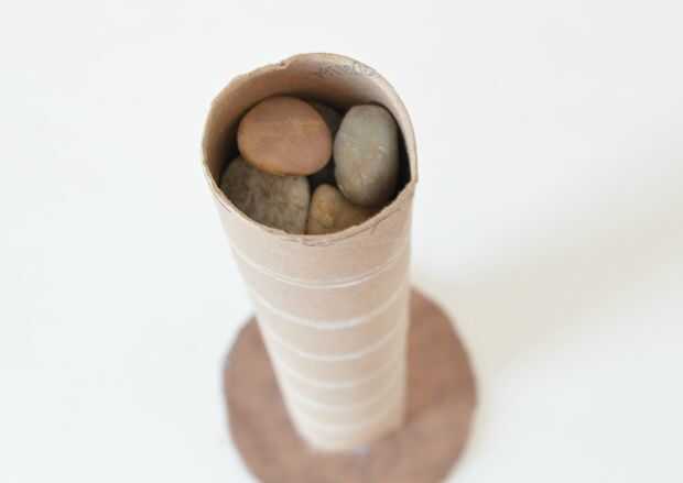 Rellenar el rollo de papel con algo de peso. Aquí utilicé piedras. Tapa con cualquier papel de desecho deseado libro de su elección. También cubre el pedazo de rollo y cartón de todo papel utilizando papel de scrapbook y Mod Podge. Usé cinta de washi plata y cubre el rollo de papel. Pero es su elección a la cubierta/máscara les con lo que tienes en la mano. También se puede utilizar pintura. Es totalmente hasta usted. También cubrí el rodillo de la cinta de pintor en papel de scrapbook. Si no tienes cualquier rollo cartón vacío como el que se usa aquí, usted puede cortar un pedazo largo de cartón y pegamento o usted también puede utilizar tubo de pvc de diámetro más grande para este propósito.