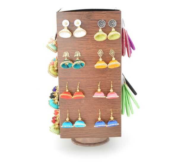 De pendientes: Esta pantalla se utiliza sobre todo para los pendientes, así que mide y marca las áreas y poked agujeros con clavijas de empuje para los pendientes. Lo planeado de tal manera que el tipo de perno de pendientes va en la parte superior ya que necesita fijarse en el otro lado y los tipos de colgantes en la parte inferior.