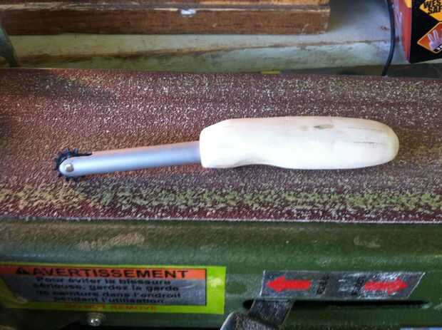 Luego cortar el tubo de aluminio de 3/8" por lo que cabe bien en el mango.