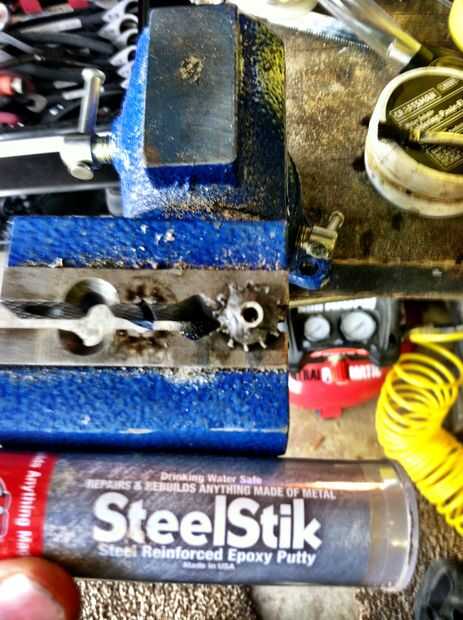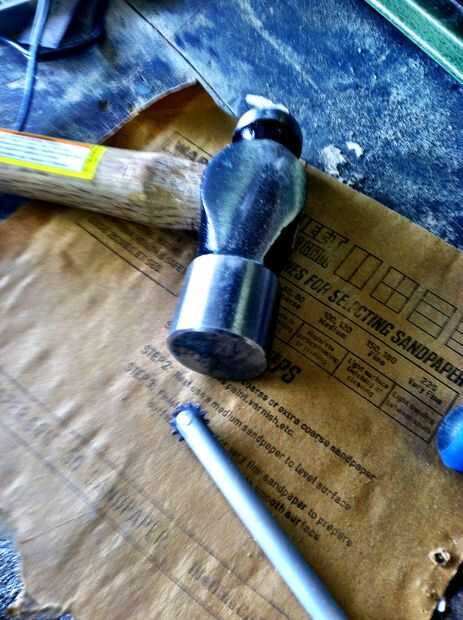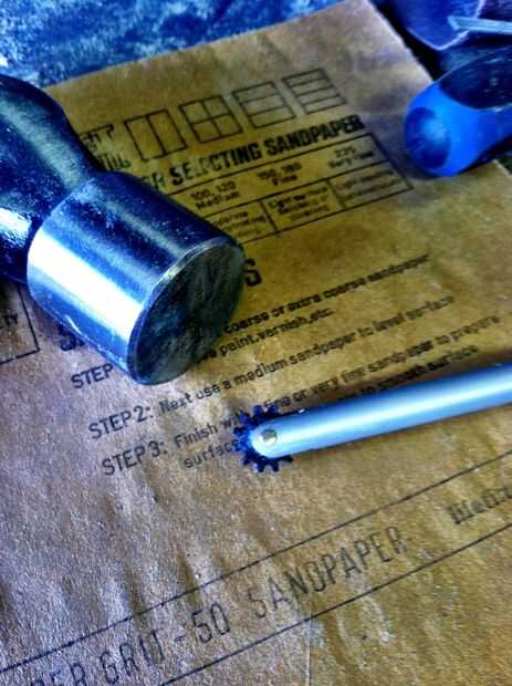 Deje que se seque, luego cortar la varilla de latón, inserte la varilla a través de la arandela de estrella acaba de terminar Asamblea y 3/8" varilla de aluminio y varilla de latón de la Peña. Verifique que el latón es martillado correctamente y utiliza una lijadora de banda para eliminar cualquier latón extra.
