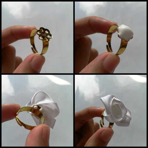 Simplemente conecte la satén rosa con un anillo en blanco usando una pequeña cantidad de pegamento caliente o pegamento blanco.