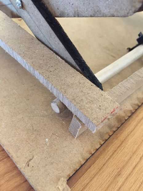 Para hacer la tijera elevación estable también se hace una plataforma inferior. Para ello puede toma la parte naranja y recueste el levantador sobre uno de los extremos, en el centro. Después de que pegue dos piezas azul juntas y después en línea al final de la plataforma inferior, más alejado de la elevación. En el otro extremo, más cercano al ascensor, usted pega el turquesa alineado con el ascensor.