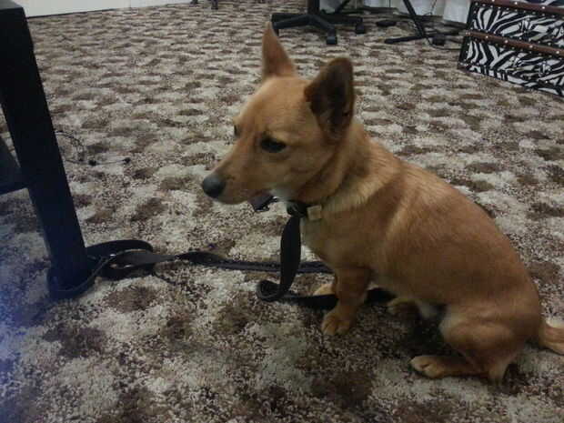he estado tratando de encontrar o hacer una correa para mi trípode así que es fácil de llevar sin un bolso o sosteniendo en mi mano. Yo estaba buscando en mi armario para cualquier cuerda, pero encontré una correa de perro que ya no usamos.Esta corre