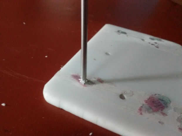 Después de cortar las piezas, hacer agujeros con el taladro/destornillador como se muestra en la imagen, dos piezas deben tener 3 agujeros (uno en el centro) y los otros dos deben tener sólo dos agujeros. Usted puede hacer más agujeros pero de eje vertical como estos agujeros deben ser utilizados para conectar con las pinzas de pelo.