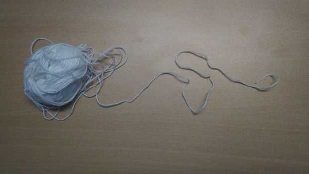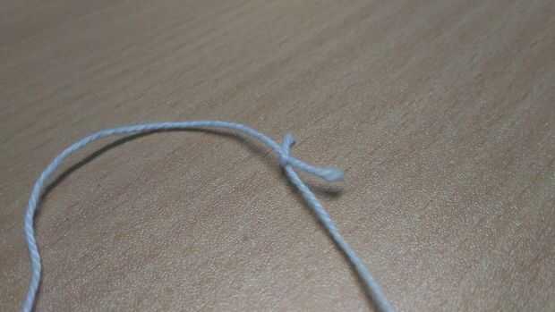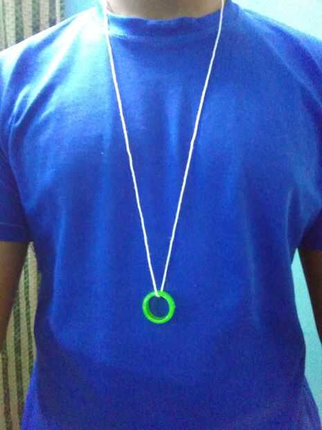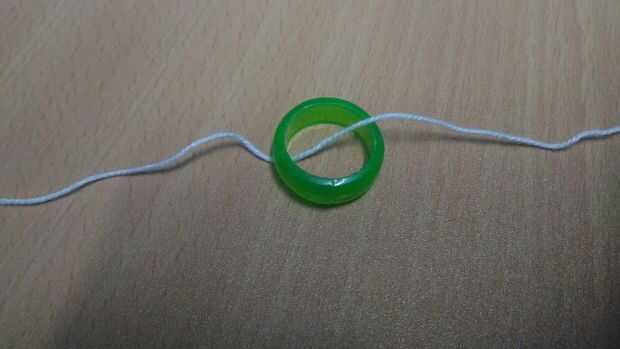 Luego tomar el anillo y ponerlo por el hilo y hacer un nudo en el extremo del hilo.