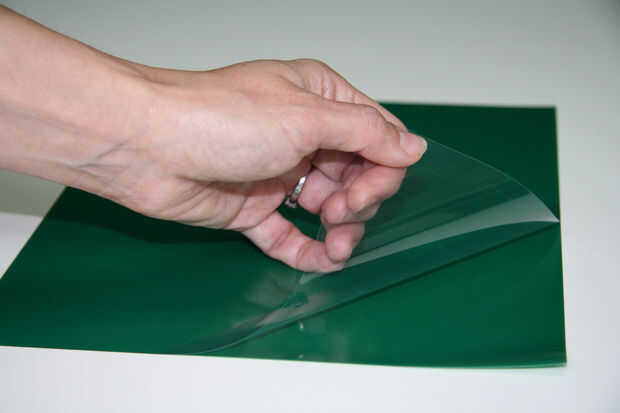 Corte PhotoEZ tamaño y quite la película protectora transparente.  Vuelta atrás adicional en bolsa negra protectora.