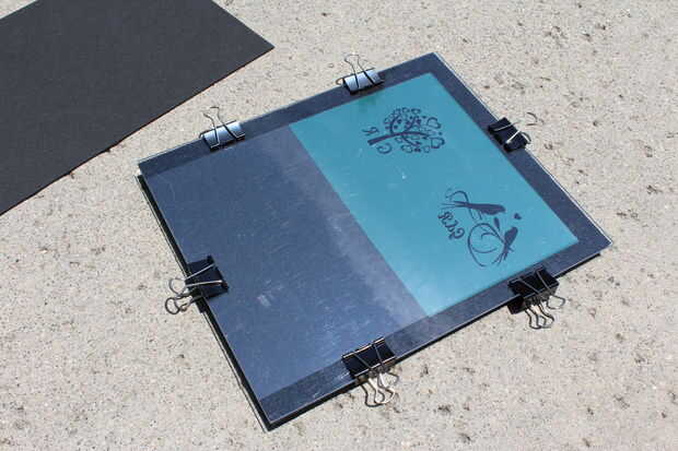 Usar algo oscuro para cubrir la plantilla como tomarla fuera exponer a luz solar directa. Una vez que el temporizador a 1 minuto, retire la tapa y exponer.