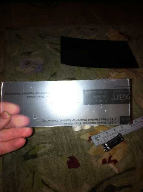 Corte un pedazo rectangular de su reja (el mío es lexan plexiglás) - mis medidas son: 7 en largo por 2 1/2 de ancho corte sin embargo le parezca.