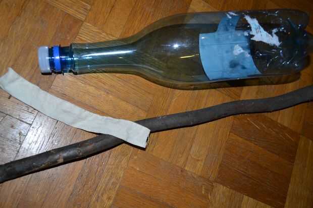 Mi suegro descubrió una manera de reutilizar botellas o para riego por goteo. Esto es cómo. Los materiales son botellas vacías, palillo de bambú, hisopo de algodón (bastoncillos de algodón) y cadena. Las herramientas son de tijera, pinza, clavo, cuch