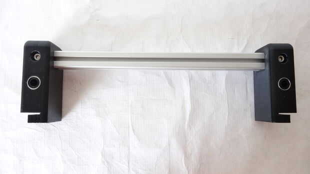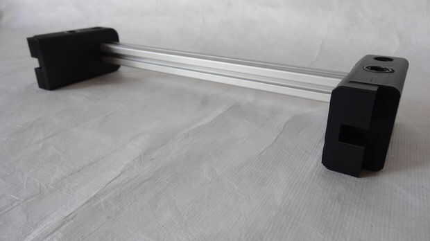 Al principio usted tiene que empujar los 300m extrusión dentro de la parte impresa. Luego conectas la extrusión con seis M5 tuercas de extrusión. Antes de presionar el LM8UU dentro de la parte impresa, por favor, taladre la pieza impresa con una broca de 15mm.