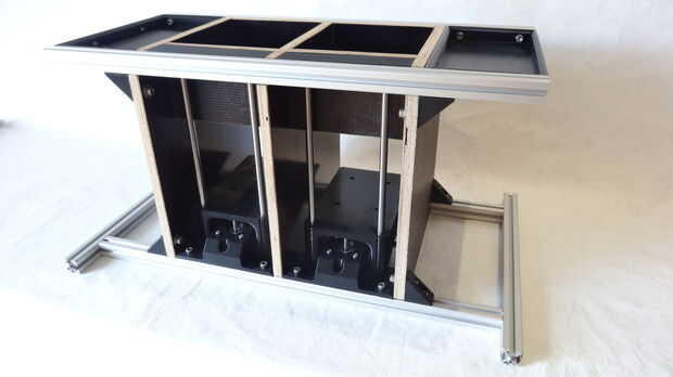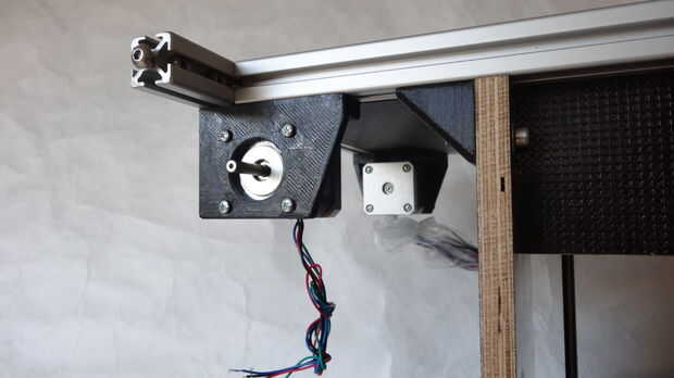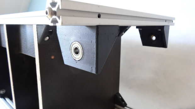 Primero tienes que conectar la segunda etapa a la caja de madera como la primera etapa. Simplemente utilizas tornillos M5x25mm. A continuación, puede adjuntar la parte impresa motor del empujador para la segunda etapa. Atornille la pieza impresa a la extrusión mediante tres tornillos M5x10mm DIN912. Para el motor de la Nema 17 utilizas tornillos m3x8mm. Una vez había enroscado el motor a la parte impresa usted colocar una polea GT2 20 a la motorshaft. En el otro extremo de la segunda etapa, sujetar las piezas impresas de empujador rodillos. Entonces empujas un 608zz rodamientos dentro de las piezas impresas. Esto es necesario para la barra lisa de 8mm, que se inserte más adelante.