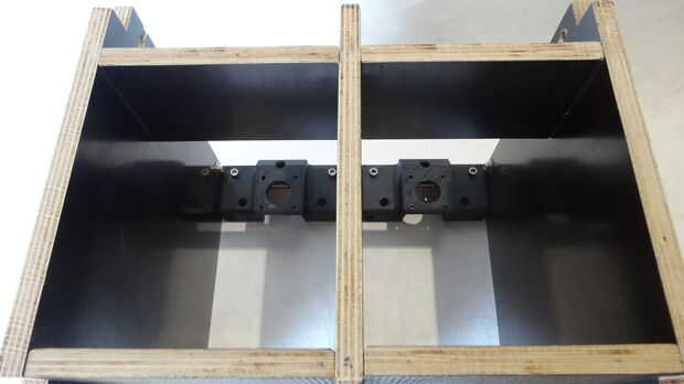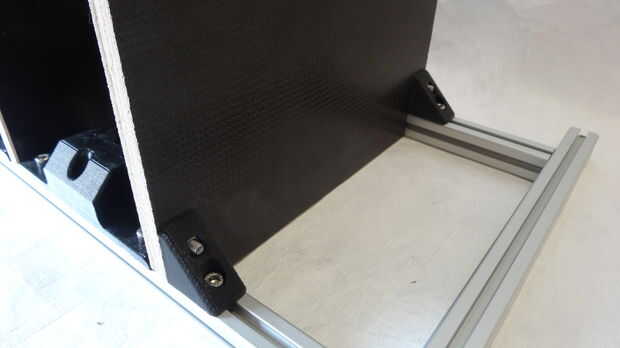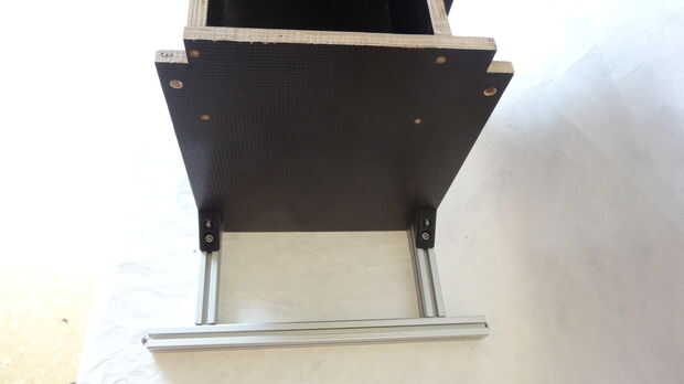 Ahora usted puede atornillar la caja de madera a la primera etapa. Utilizar unas arandelas para los tornillos M5x25mm.