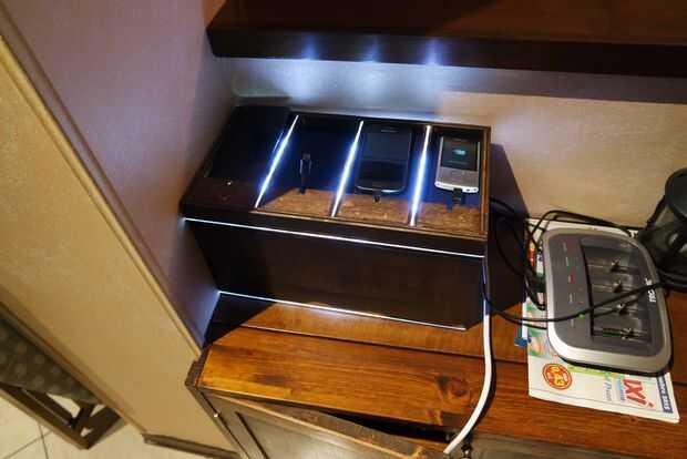 decidí usar mis viejos altavoces estéreos e incorporarlos en mi estación de carga, por lo que puedo reproducir mi música con el más bajo. (Mucho mejor que el altavoz del teléfono móvil) + puede ser utilizado como un altavoz muy fuerte o un despertado