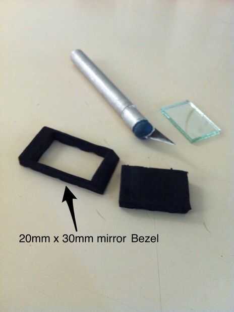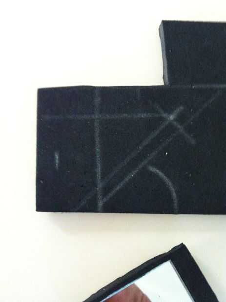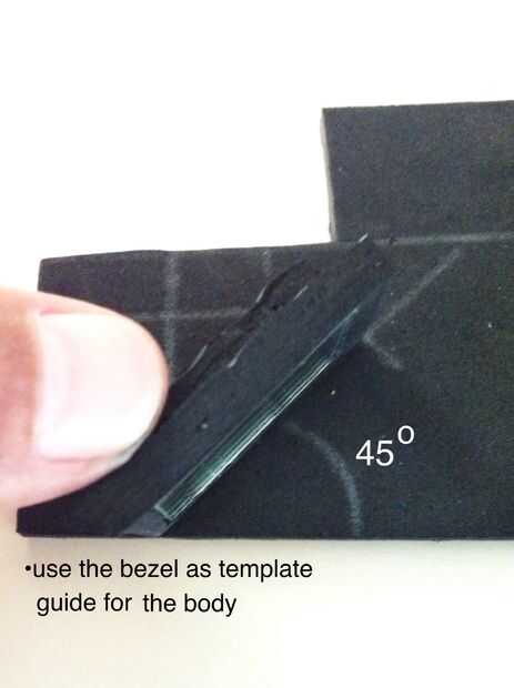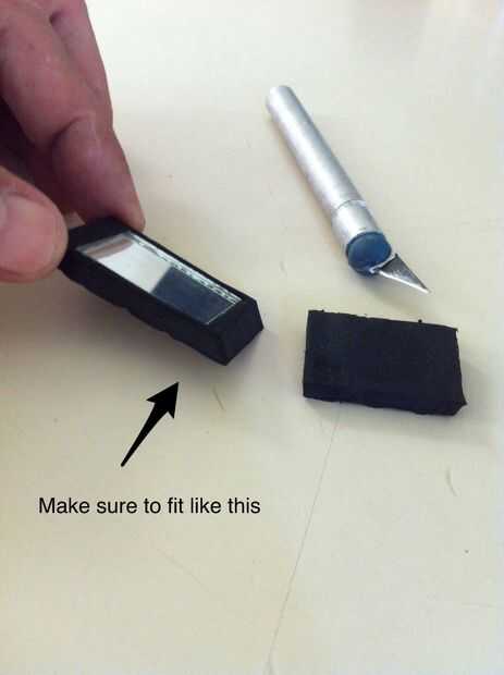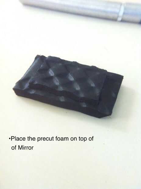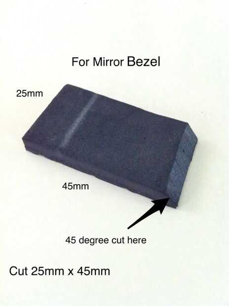 2 cortar espuma de 25 mm x 45 mm como el bisel del espejo. Uno de los extremos debe cortarse a 45 grados cortar (ver imagen abajo)