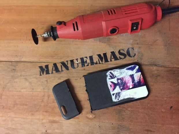 Luego marqué una línea alrededor de 1, 5cm por debajo del orificio de la lente, corte con un disco de corte montado sobre mi herramienta rotatoria y lijar el borde con la lijadora orbital.