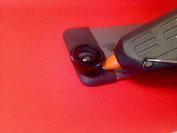 Si no está bien, mover el lente y hacer otra prueba; de lo contrario se puede añadir más pegamento caliente alrededor de borde de la lente ojo de pez.