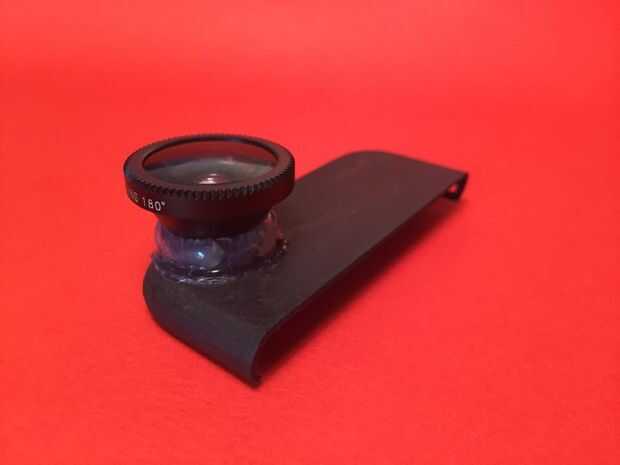Nota: Para hacer el pegamento se adhiera mejor a la lente tienes que raspar un poco el borde inferior de la lente ojo de pez.