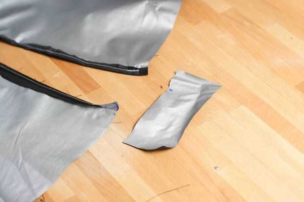 Utilizar una tira de la tela exterior para empalmar los extremos de las aletas del acceso. Asegúrese de que usted hacer esa dimensión borde 28" general cuando lo haces.
