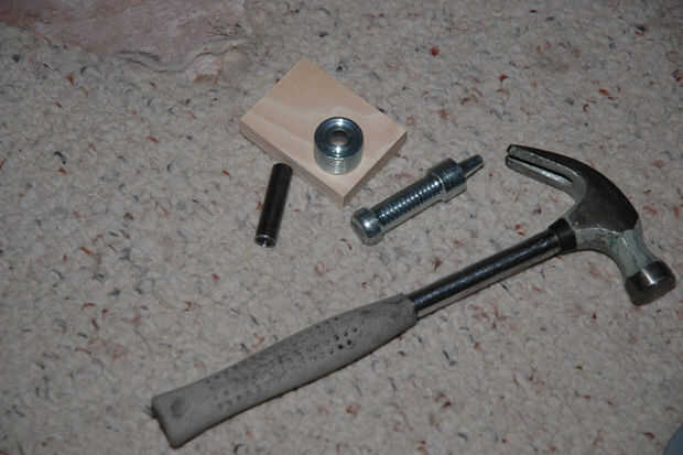 El siguiente paso fue poner gromments en cada esquina con mi kit de herramientas de confianza. El kit incluye todo menos el martillo
