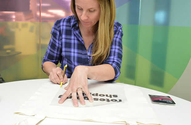Decida dónde desea colocar el diseño en su bolso y luego trace una línea alrededor del borde de la hoja con un lápiz.