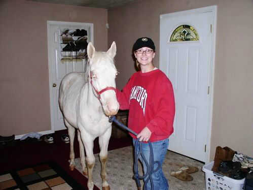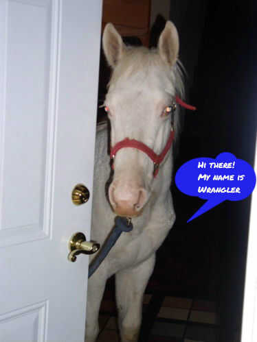 Mi hija y mi yerno viven en el país porque les encantan los animales. No, el caballo no es una mascota de la casa; Conoce a Wrangler; había empujado la puerta abierta mientras yo estaba en la derecha en la casa y se alejaron. Llamé a mi hija que estaba fuera y le dijo que él estaba en la casa. Mientras tanto agarré mi cámara y tomó estas fotos.