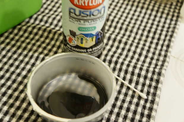 La primera vez pinté los números que no los bordes de la cinta bien; dando como resultado un trabajo de mala pinta. También se utiliza pintura de esmalte que no adhirió a la superficie. He utilizado pastillas de alcohol y algodón para quitar la pintura, (hice este poco después de que la pintura se había secado) lijar la superficie y limpiar con el alcohol. He comprado pintura Krylon que no necesitaba ser pintado o arena. No tengo un bastante pequeño pincel para aplicar la pintura rociar poco de pintura en un recipiente de plástico y utilizar q-tips como un cepillo.