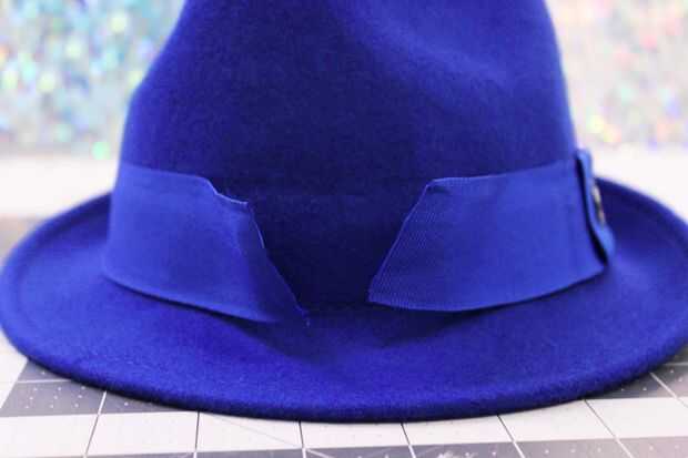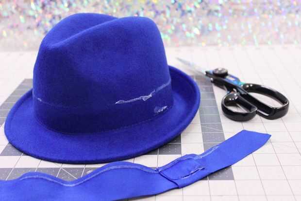 Comencé por quitar la banda original que se pega al sombrero alrededor del borde superior. El sombrero está hecho de lana que hizo fácil quitar la banda y cualquier pegamento que todavía estaba pegada al sombrero.